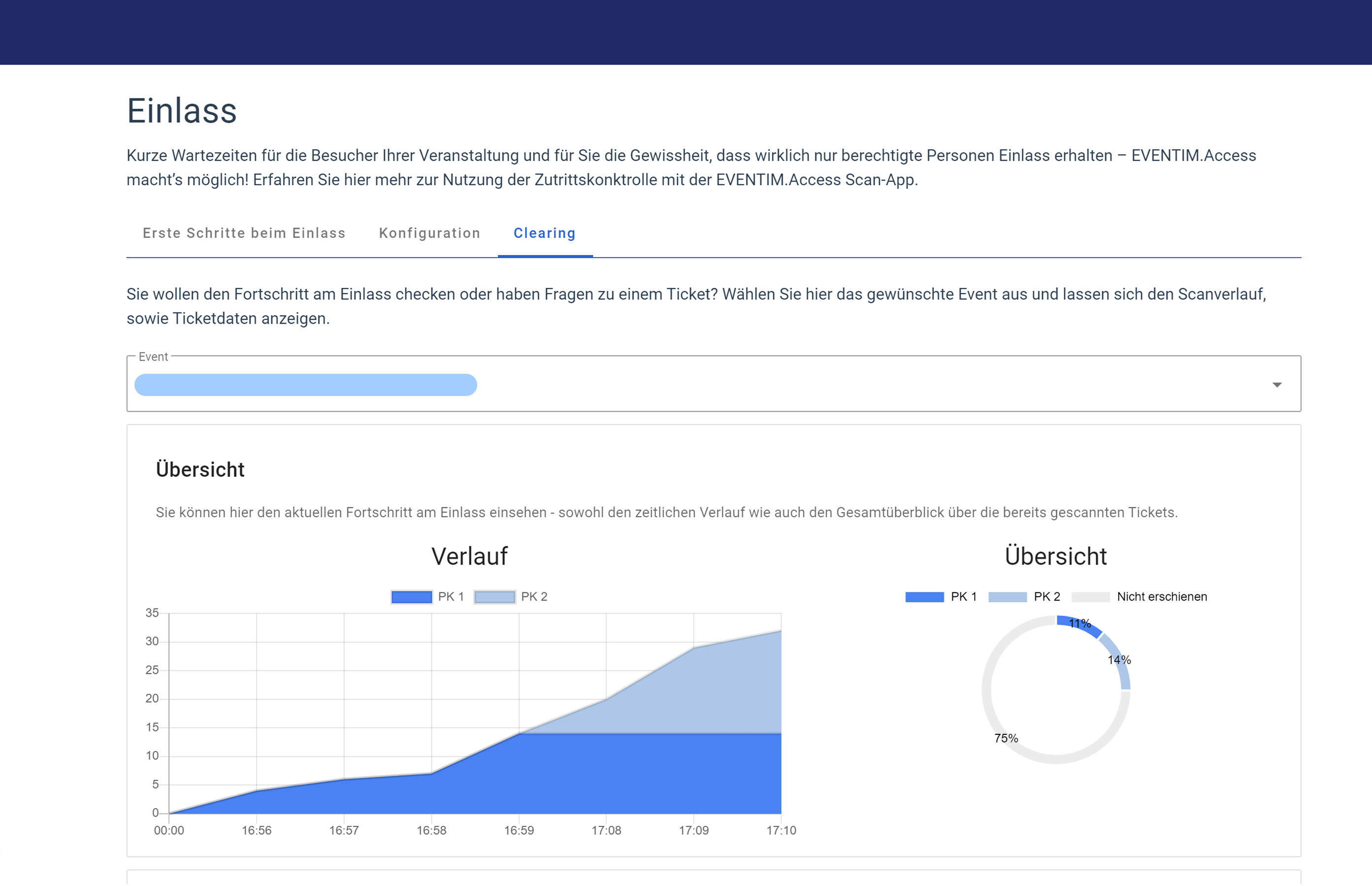 Behalte immer einen genauen Überblick über den Einlassverlauf. Die Scan-App zeigt dir direkt an, wie viele Tickets bereits gescannt wurden. Das Reporting in deinem EVENTIM.Light Account gibt dir außerdem einen detaillierten Einblick in den Einlassverlauf. Du siehst zum Beispiel zu welcher Uhrzeit der Andrang besonders groß war, wie viele Personen schon da sind und welche Ticketkategorien jeweils wie häufig gescannt wurden. Mithilfe dieser Daten kannst du den Ablauf vor Ort verbessern oder den Einlass für zukünftige Events optimieren.